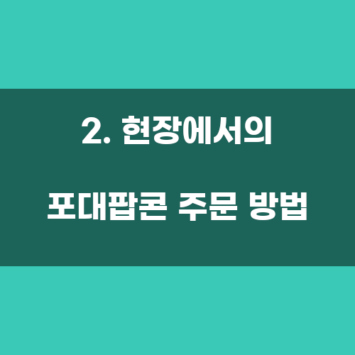 메가박스에서 포대팝콘을 주문하는 것은 생각보다 간단합니다. 현장에서의 주문 과정은 다음과 같은 단계로 이루어집니다.